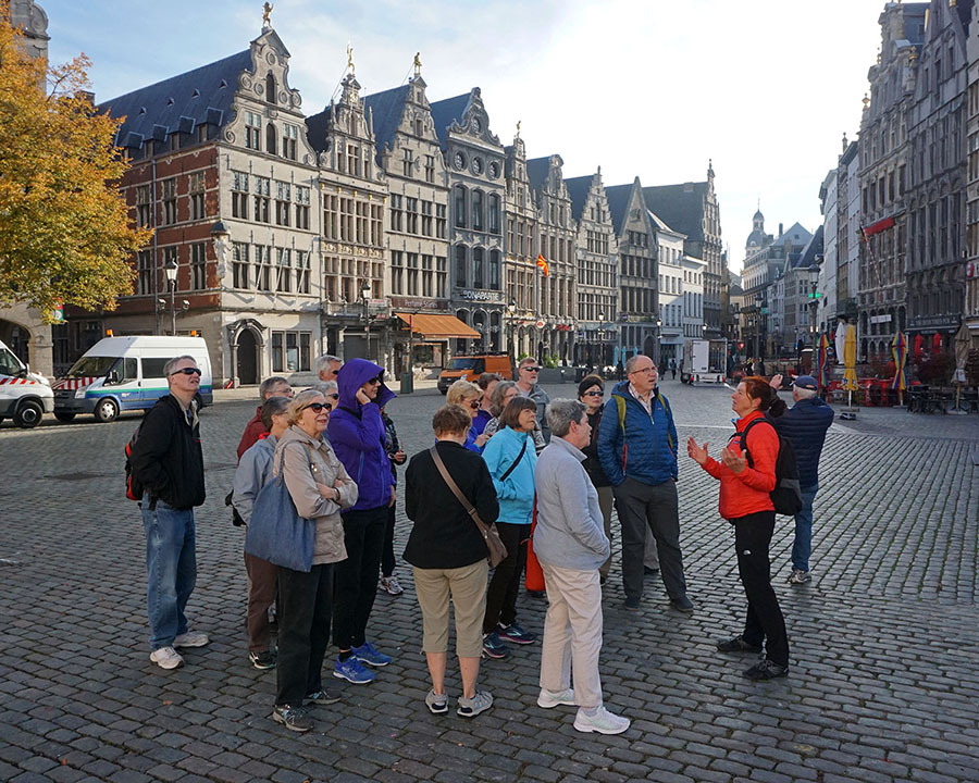 Monday was another chilly day but there was very little wind. We rode 36.5 miles mostly through farm land. We ended the ride in Antwerp where we met our barge. 36 miles sounds like a lot but it was broken into 3 segments and was very "do-able". After the first 23 miles we stopped and picked up some sandwiches and ate outside near Wisserkerke Castle. Our last 13 miles included a ride down an elevator with all our bikes, through a long tunnel under the river, and then back up the elevator. Europe is very bike-friendly!